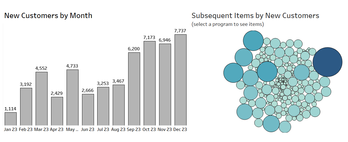 This visualization shows what items new customers purchase after their initial qualifying purchase.